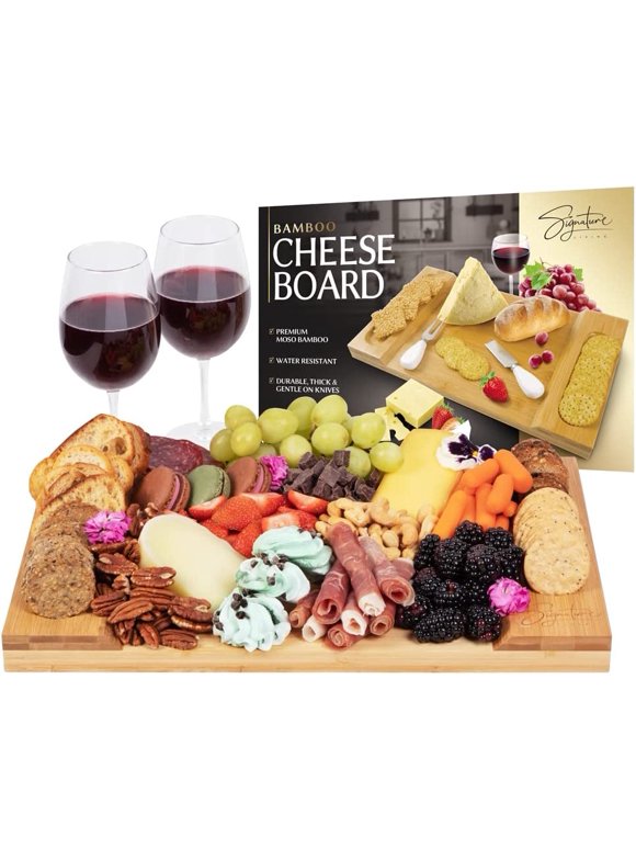 Amazon Com Unique Bamboo Cheese Board Charcuterie Platter And Serving Tray For Wine Crackers Brie And Meat Large And Thick Natural Wooden Server Fancy House Warming Gift Serveware Accessories